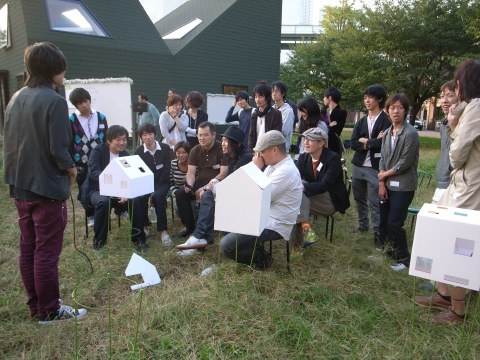 横浜トリエンナーレ2008にて建築学生を対象としたワークショップ「しゅうまい2008」を開催。mosakiは企画・運営として携わりました。今や全国へ派生した伝説のワークショップ型建築サークル「しゅうまい」の創始者でもある菊地宏さんを中心に、ゲストには、平田晃久さん、高木俊さん、中村竜二さん、中川純一さん、石上純也さんという超、超豪華講師陣をお招きしました。テーマは『家ー隠れた日常を考えるー』とし、家型の空間の中に、二つの部屋を必ずつくりそこに笑えるストーリーを思い描くというものでした。今回の運営を通して、mosakiのオリジナリティの源泉の1つはこういう部分にあるのだと改めて感じました。そういえばはじまりのDO+は日々ワークショップだったのです。