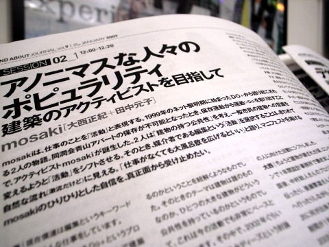 『LIVE ROUND ABOUT JOURNAL 2009』という公開プレゼン+討議のイベントにmosakiとして出演しました。