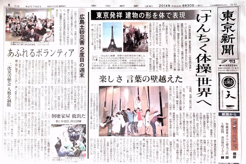 2014.08.30【新聞】東京新聞(夕刊一面)「『けんちく体操』世界へ」